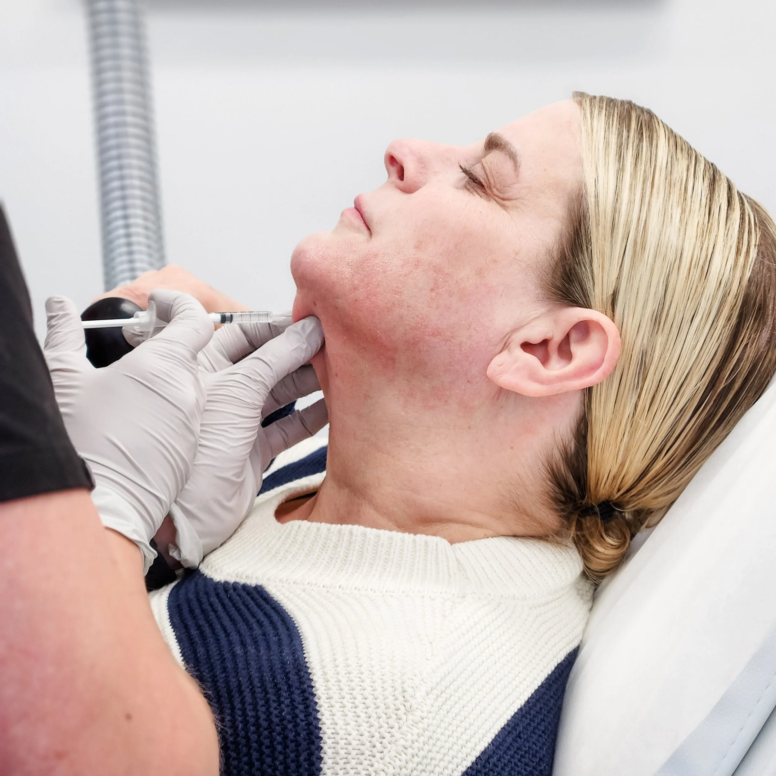 This perfect pairing offers the sculpting benefits of filler while stimulating collagen to fill in those tech neck lines and tighten sagging skin.